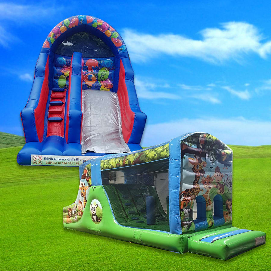 In this package from Hebridean bouncy castle hire you get two of the most fun products we have. You get race through the doors of the
